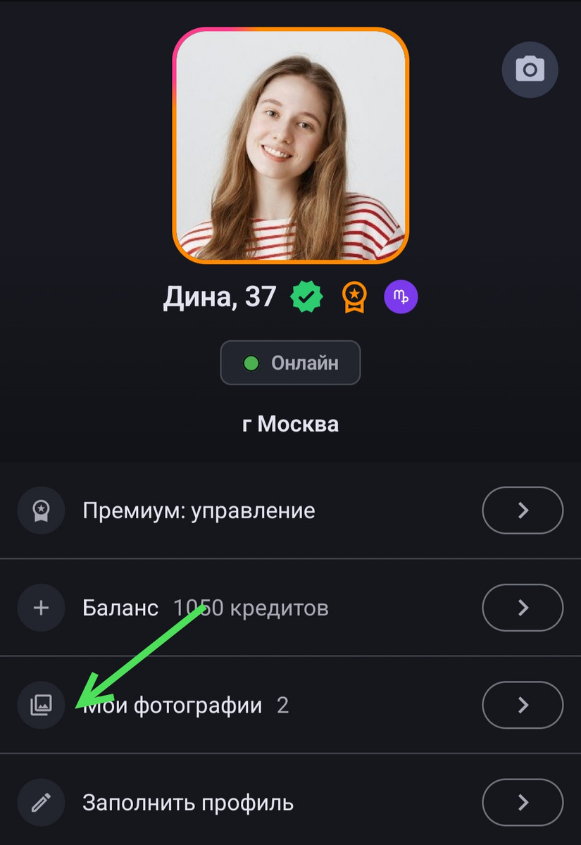 Перейдите в свой профиль, в меню выберите «Мои фотографии», нажмите на эту кнопку, как показано на скриншоте.